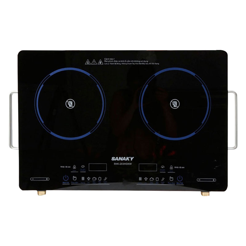 Bếp hồng ngoại đôi Sanaky SNK-203HGNW thiết kế thời trang, đun nấu tiện lợi, tiết kiệm điện, giá cả tốt.