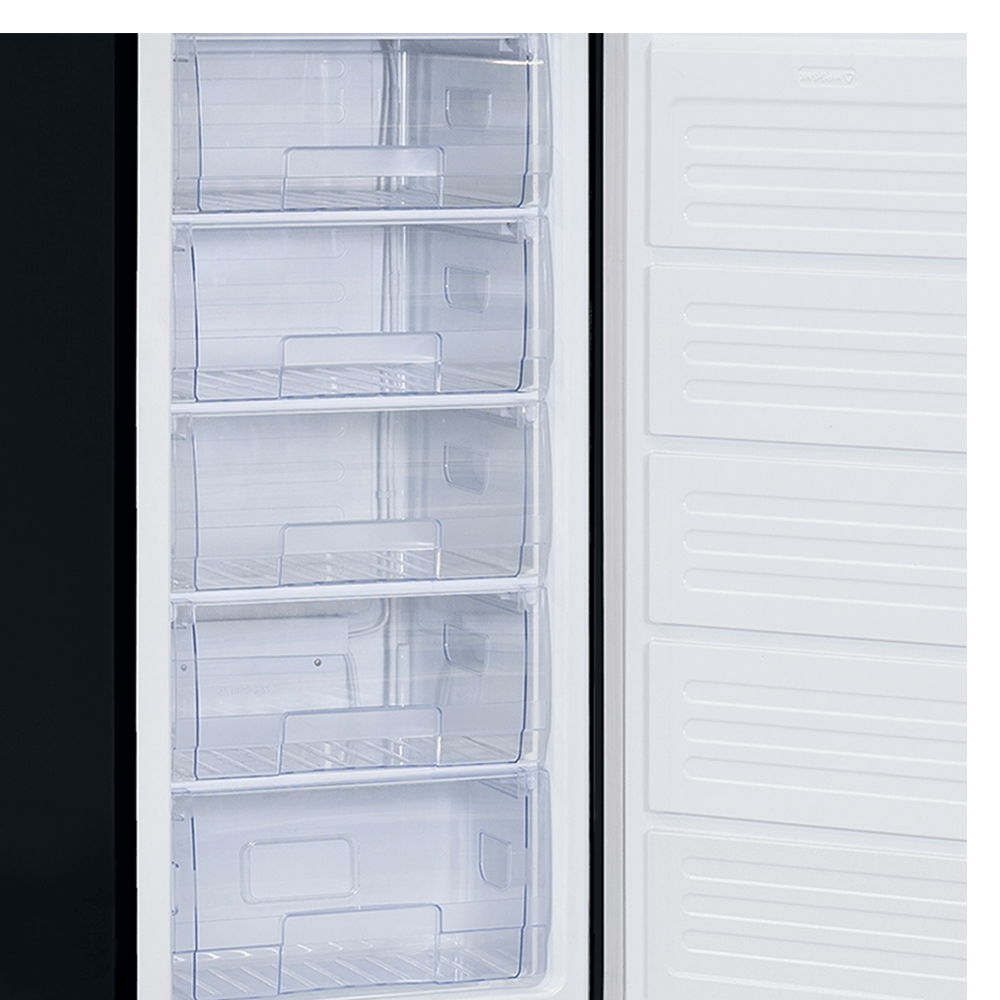 Chất liệu lòng tủ được làm từ nhựa ABS có độ bền tốt và đảm bảo an toàn cho người sử dụng. Hơn nữa, nhiệt độ ngăn đông được thiết kế ≤ -18°C cho phép người dùng bảo quản các thực phẩm đông lạnh như hải sản, thịt cá,… một cách dễ dàng.