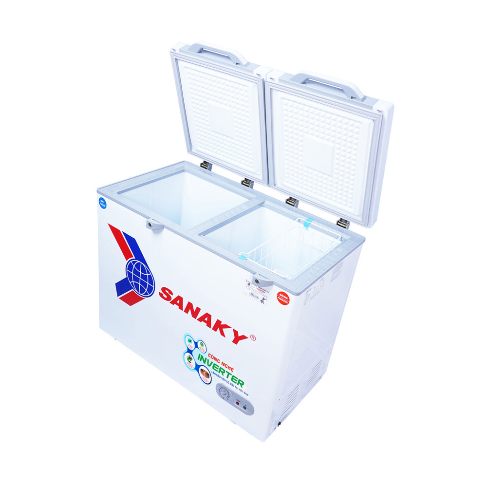 Tủ đông Inverter Sanaky VH-2899W4K thuộc dòng tủ 2 ngăn 2 cánh (gồm 1 ngăn đông và 1 ngăn mát), hay còn được gọi là tủ đông mát của thương hiệu Sanaky. Chiếc tủ này đáp ứng được nhu cầu vừa bảo quản trữ đông thực phẩm như thịt, cá, đồ đồng lạnh… và bảo quản mát thực phẩm như rau, củ , quả, đồ uống…