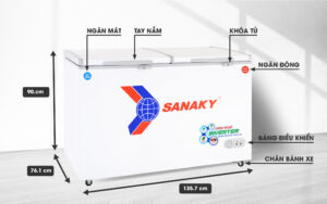 Tủ đông Inverter Sanaky VH-5699W3 thuộc dòng tủ 2 ngăn 2 cánh (gồm 1 ngăn đông và 1 ngăn mát), hay còn được gọi là tủ đông mát của thương hiệu Sanaky. Chiếc tủ này đáp ứng được nhu cầu vừa bảo quản trữ đông thực phẩm như thịt, cá, đồ đồng lạnh… và bảo quản mát thực phẩm như rau, củ , quả, đồ uống…