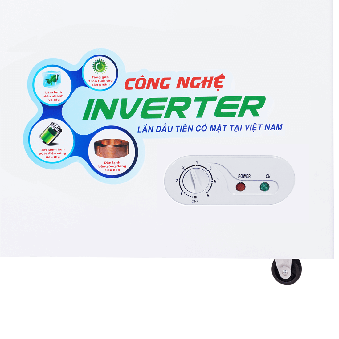 - Tủ được tích hợp công nghệ biến tần inverter nên sản phẩm tiết kiệm hơn 50% điện năng so với các sản phẩm tủ đông thông thường khác.
