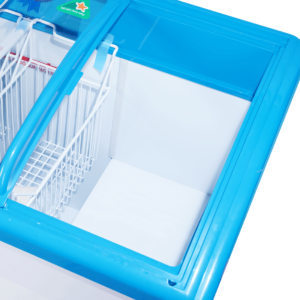 - Cửa tủ đươc thiết kế kiểu cánh kính mở lùa, với chất liệu kính chịu lực, cách nhiệt tốt. Hơn nữa kiểu mở lùa giúp tránh thất thoát nhiều hơi lạnh tiết kiệm điện cho bạn. Ngoài ra cửa kính được làm cong xuống nhằm giúp khách hàng có thể quan sát dễ dàng hơn các loại thực phẩm được bảo quản bên trong tủ.