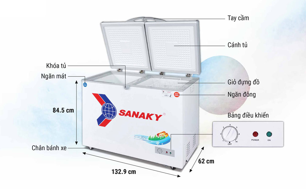 Tủ đông Sanaky VH-4099W1 được thiết kế gọn gàng, màu trắng trang nhã phù hợp với mọi kiểu không gian quán ăn, hay sử dụng cho gia đình. Tủ được chia làm 2 ngăn: ngăn đông và ngăn mát riêng biệt, có dán nhãn chỉ dẫn tiện quan sát cho phép bạn dễ dàng phân loại thực phẩm để bảo quản.