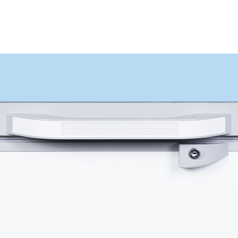 Khóa an toàn: Việc mở tủ thường xuyên sẽ làm thất thoát nhiệt, giảm hiệu quả đông lạnh của tủ, đồng thời tiêu tốn nhiều điện năng không cần thiết. Khóa an toàn sẽ giúp người sử dụng kiểm soát tốt hơn hoạt động đóng – mở tủ đông.