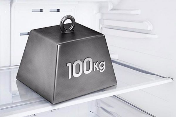Khay kính cường lựcTủ lạnh được trang bị hệ thống khay đựng làm bằng kính cường lực chắc chắn có thể chịu được khối lượng lên đến 100kg. Dễ dàng chứa nhiều loại trái cây yêu thích và bình chứa nặng mà không sợ ảnh hưởng đến độ bền của kệ. |