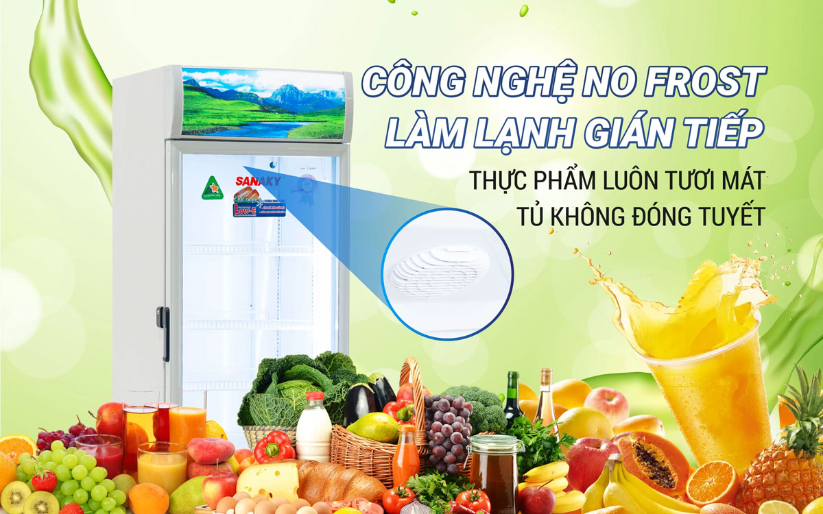 Với công nghệ làm lạnh Nofrost, Tủ Mát Sanaky Inverter VH-5089K3 sẽ hoàn toàn không gây ra hiện tượng đóng đá dàn lạnh. Do vậy hạn chế việc người sử dụng phải xả đông khi sử dụng và bảo quản đồ được tốt hơn.