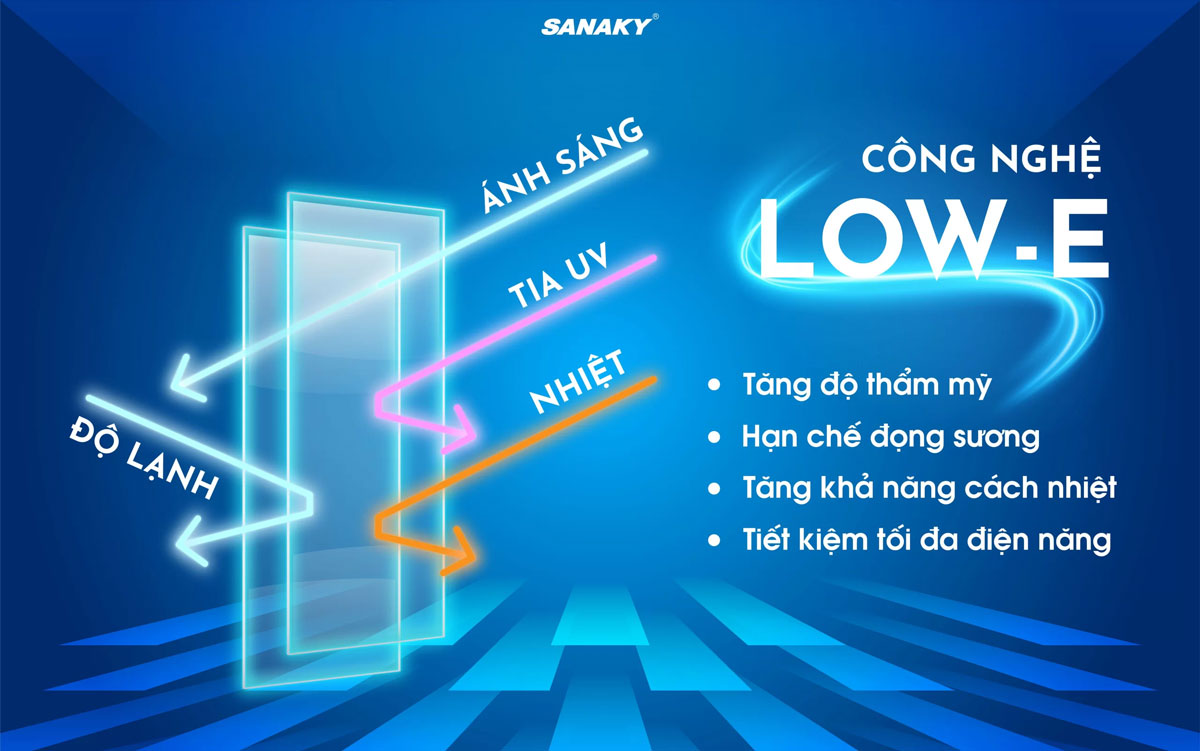 Hạn chế sự trao đổi nhiệt với bên ngoài: kính phủ LOW-E sẽ hạn chế tia hồng ngoại mang nhiệt và tia UV năng lượng cao của ánh sáng trắng thâm nhập vào tủ.