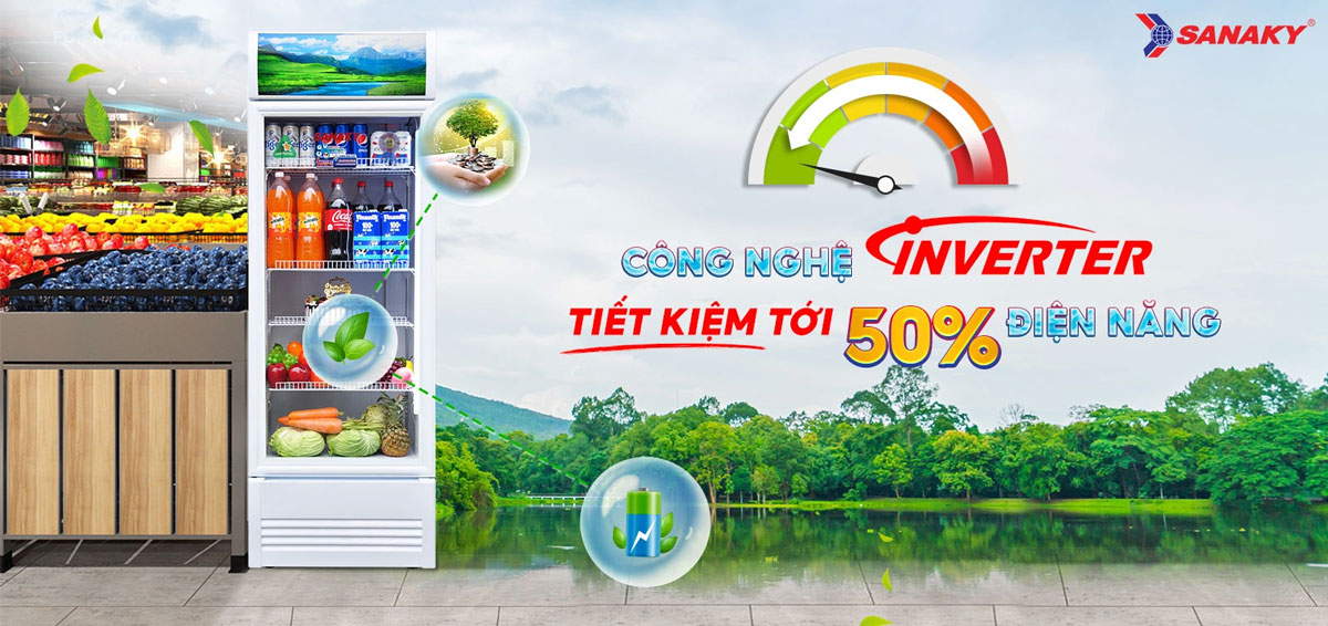 Công nghệ inverter trên tủ mát Sanaky VH-5099K3 giúp giảm tiêu thụ điện từ 30-50% so với tủ mát thông thường, giúp tủ vận hành êm ái, giảm thiểu tiếng ồn khi hoạt động.
