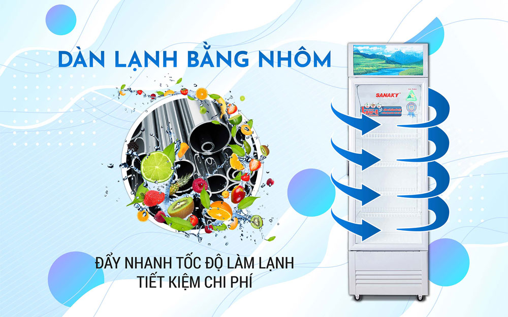 Dàn lạnh làm bằng nhôm có hiệu quả truyền nhiệt tốt, đẩy nhanh tốc độ làm lạnh. Ngoài ra đây dàn lạnh bằng nhôm còn tiết kiệm chi phí cho người sử dụng khi có giá thành phải chăng.
