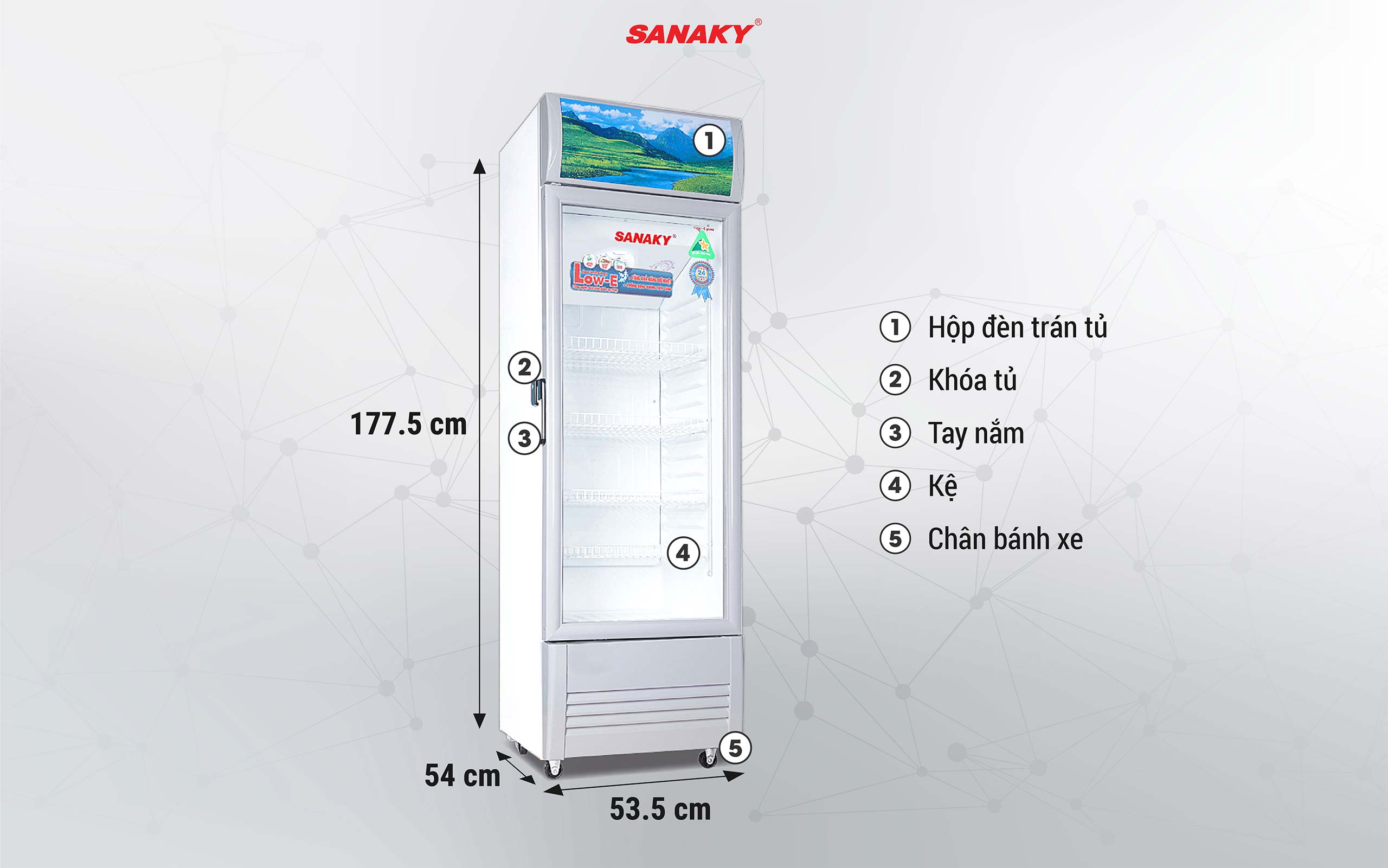 Đèn LED: Tủ mát Sanaky được thiết kế với hệ thống đèn LED dọc theo hông và nóc tủ, chiếu sáng toàn bộ các góc khuất giúp trưng bày các sản phẩm bắt mắt và thu hút. Hơn nữa, hệ thống đèn LED còn tiết kiệm điện năng và có tuổi thọ bền bỉ hơn nhiều lần so với các loại đèn huỳnh quang, đèn sợi đốt,… mang lại giá trị sử dụng lâu dài cho người sử dụng.