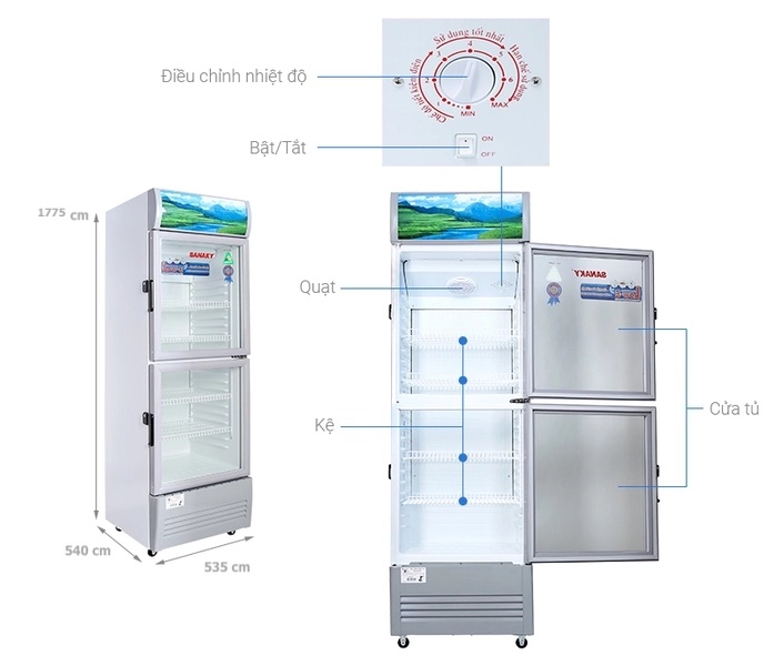 Khóa an toàn: Việc mở tủ thường xuyên sẽ làm thất thoát nhiệt, giảm hiệu quả lạnh của tủ, đồng thời tiêu tốn nhiều điện năng không cần thiết. Khóa an toàn sẽ giúp người sử dụng kiểm soát tốt hơn hoạt động đóng – mở tủ mát.